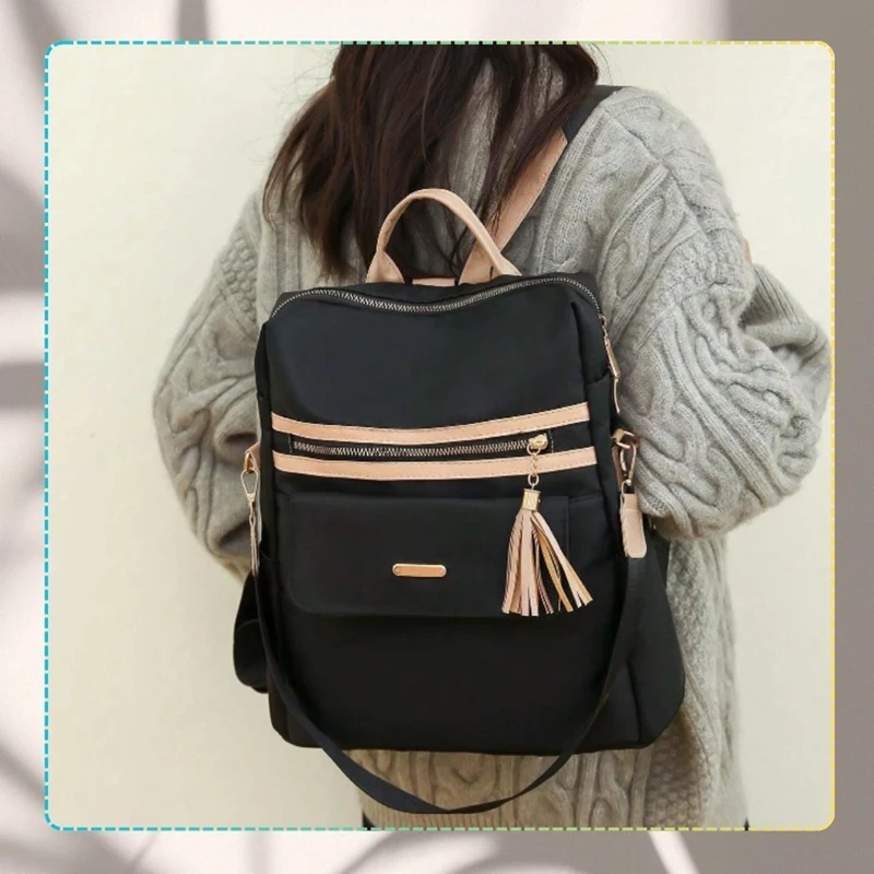 Elegantní béžový dámský batoh z voděodolného materiálu Oxford nabízí prostorné kapsy, bezpečné zavírání na zadní straně a pohodlné nošení na zádech i přes rameno. Ideální do školy, města i na výlet.