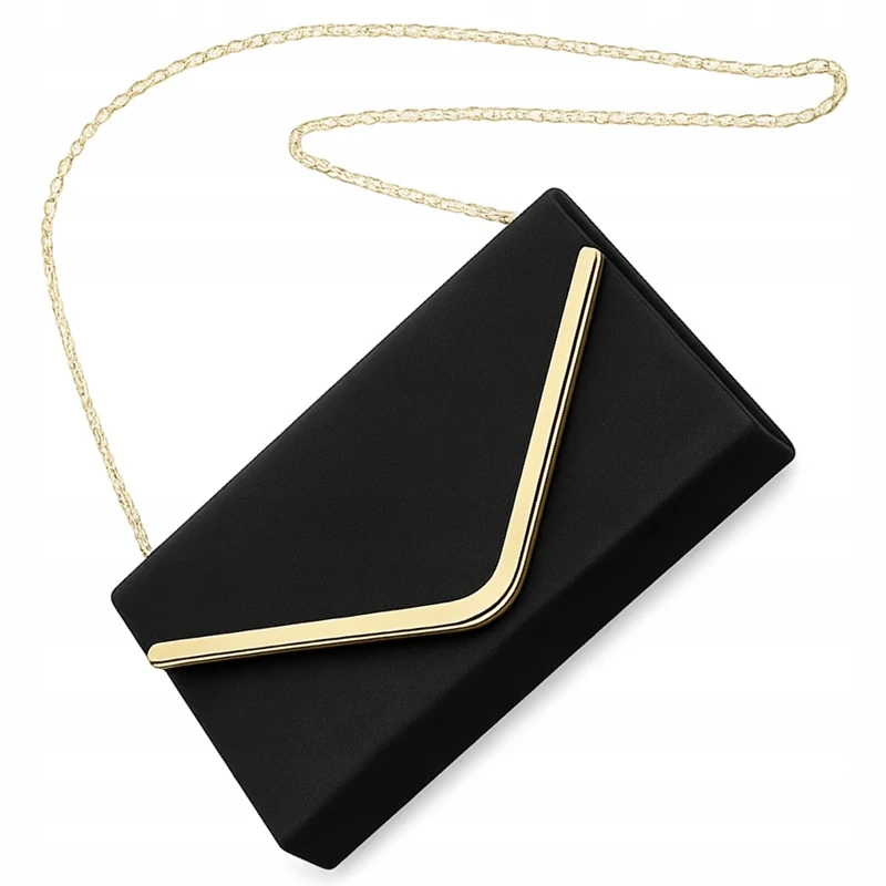 Toto dámské psaníčko je navrženo tak, aby bylo nejen krásné, ale i praktické. Přední klopa je ozdobena zlatým kovovým prvkem ve tvaru písmene V, který vytváří elegantní kontrast k černému povrchu kabelky. Tento detail dodává kabelce moderní a luxusní vzhled.