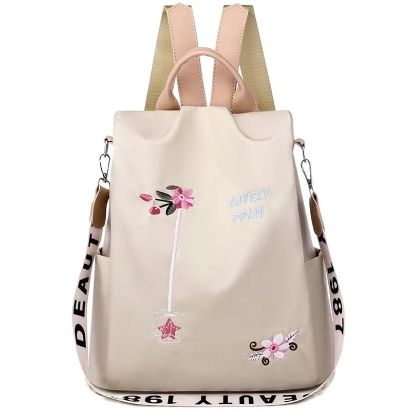 Batoh lze nosit klasicky na zádech nebo elegantně na rameni, takže se snadno přizpůsobí vašemu stylu i příležitosti. Jemná béžová barva je nadčasová a snadno kombinovatelná s jakýmkoliv outfitem – od ležérního až po elegantní městský styl. Dekorativní květina a nápis dodávají batohu ženský a moderní vzhled. Stříbrné kování podtrhuje celkový elegantní dojem.
