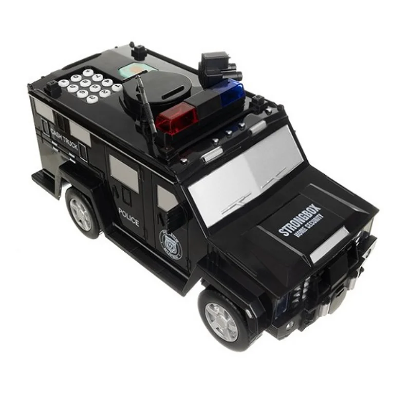 Pokladnička/trezor policejní vůz je ideálním doplňkem pro každé dítě, které chce mít svůj vlastní bezpečný trezor na peníze. Tento jedinečný trezor ve tvaru policejního vozu je nejen praktický, ale i zábavný a interaktivní. Je navržen tak, aby děti mohly bezpečně spořit své bankovky a mince, a zároveň si užívaly spoustu zábavy.